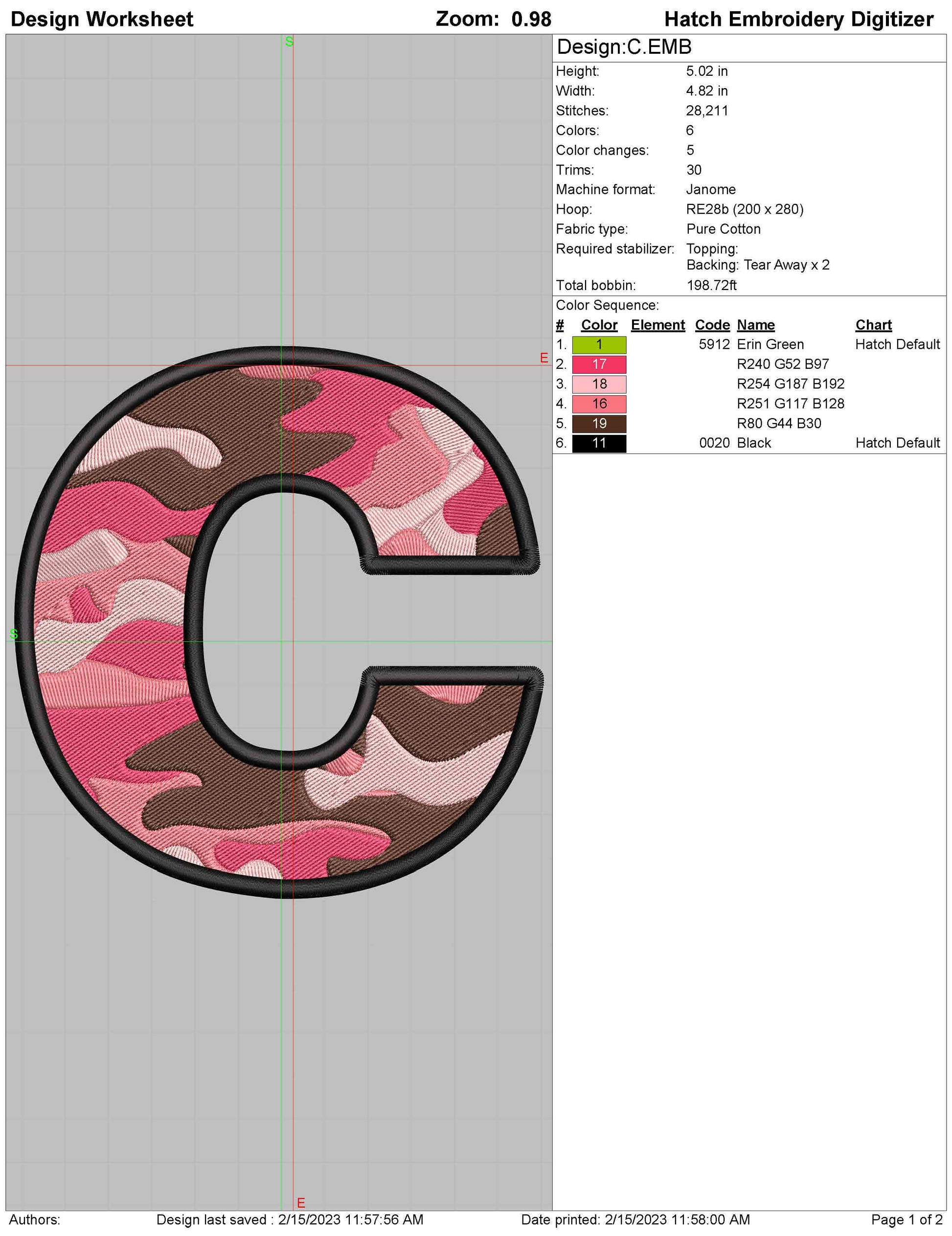 CAMO Embroidery Alphabet (A to Z) 5 Inch PES Format